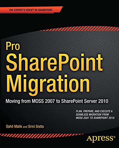 Learn from Pro SharePoint Migration on how to migrate your existing farm - infrastructure, upgrade approaches, code, branding, and impact of new features of SharePoint 2010 - in a strategic way that results in smooth transition. Noted author Sahil Malik, with Srini Sistla, work together to provide detailed strategies and tools to assess, plan and execute a SharePoint 2010 migration that is efficient and cost-effectiveand that doesn't use expensive third-party software. The "clean slate" approach embraced by this book, coupled with flexible tools designed byMicrosoft and the author, will provide you with the statistics, charts, and diagrams necessary to perform a meaningful assessment of your current SharePoint 2007 environment.You'll thenbe able to planthe lowest-cost, least-hassle way to migrate your current environment, and its applications and data, to SharePoint 2010, and how to map your existing use of SharePoint 2007 to the new features and enhancements in SharePoint 2010. Pro SharePoint Migration will help Gain a better understanding of high level comparison and changes you need to learn between the two versions To migrate or not? Learn about new functionality that might replace your existing custom built code or non-code based solutions. Build a strong toolset to create, update, administer, and migrate 90% of the most commonly used SharePoint objects Grasp the intricacies of the SharePoint 2010 application programming interface (API) Become a better SharePoint 2010 administrator in your newly-migrated environment What you'll learn A high level comparison of MOSS 2007 and SharePoint 2010, asking what's new Available supported and unsupported upgrade choices Migration strategies to minimize disruption Strategies for migrating old settings to new Changes to security model, lists, libraries, and more Visual changes, the impact on branding, and how to address overall branding artifacts Statistics, monitoring and usage analysis of existing and new farms Learn about ribbon changes and customizations A discussion of being a savvy business user developer, using SharePoint designer 2010 and InfoPath 2010 Overview of new changes and enhancements to enterprise content management features Changes to SharePoint APIs Who this book is forPro SharePoint Migration is for intermediate to advanced SharePoint administrators, and developerswho are interested in migrating from SharePoint 2007 to SharePoint 2010 without third-party software. Table of Contents Differences in SharePoint 2007 and SharePoint 2010 The Upgrade Process and Decisions Migration for the IT Administrator Migration for the Branding and Design Folks Migration for the Developer