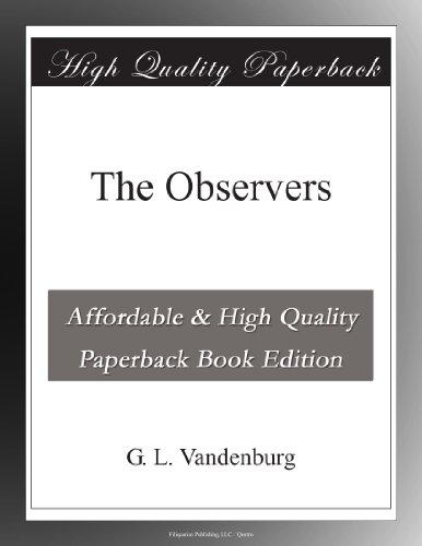 The Observers is presented here in a high quality paperback edition. This popular classic work by G. L. Vandenburg is in the English language, and may not include graphics or images from the original edition. If you enjoy the works of G. L. Vandenburg then we highly recommend this publication for your book collection.