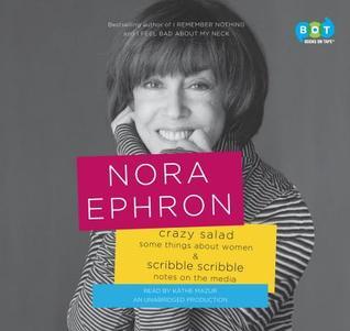 This book, needless to say, is composed of two collections of articles penned by the late, great Nora Ephron. The pieces from the books Crazy Salad: Some Things About Women and Scribble, Scribble: Notes on the Media were originally published in magazines, mostly in Esquire and in the 1970s, and are gathered in this omnibus for their third outing.
