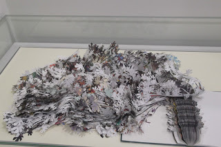 Archivists and other book purists may cringe at the thought of tearing up books to make art, but I believe the artist is showing new ways to turn books that are damaged, discarded, or outdated (such as medical and science books), or otherwise unreadable into a new art form. It is an interesting concept. I enjoy working with paper and embrace the idea of using recycled materials to make art.