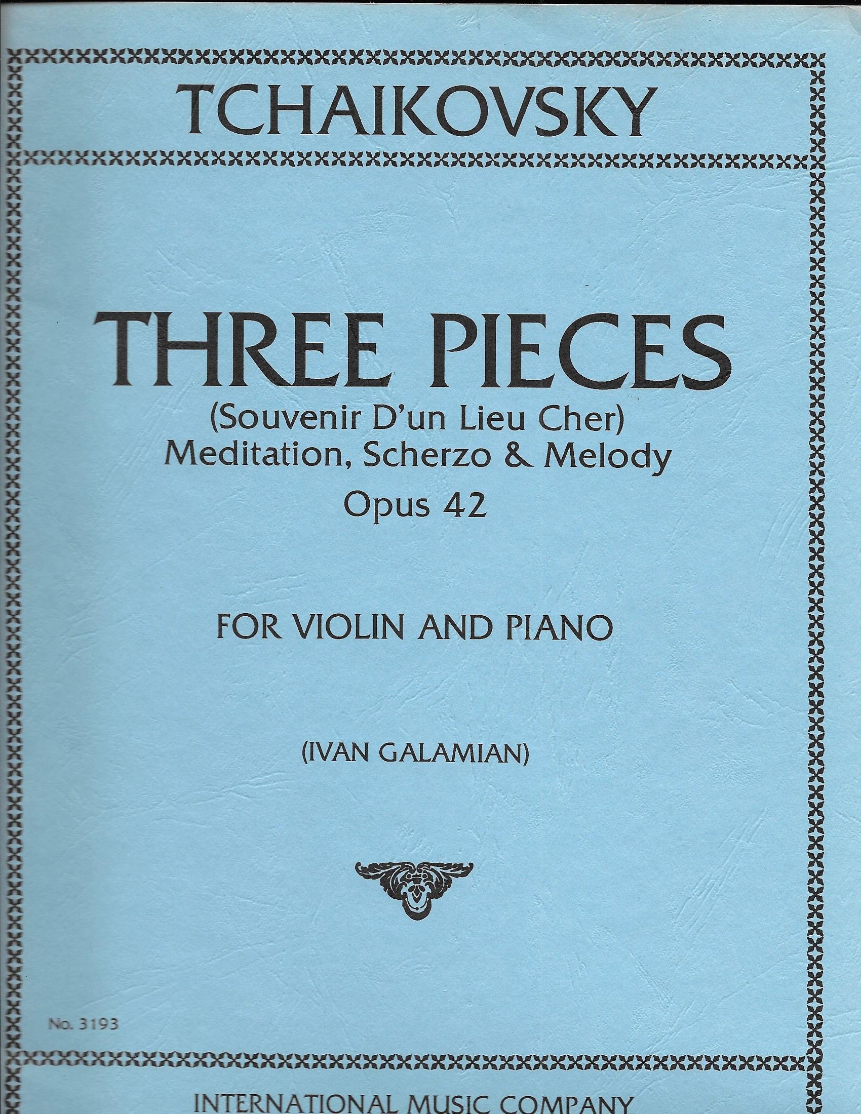 Souvenir D'un Lieu Cher, Op. 42 (Three Pieces: Meditation; Scherzo; Melody). By Peter Ilyich Tchaikovsky. Edited By Ivan Galamian. For Violin and Piano.