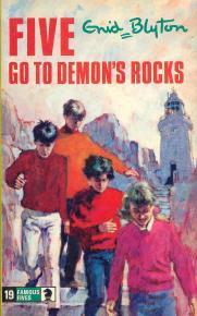 Five Go to Demon's rocks, one of the later in the five series. By now, we know the formula well. Something happens that ensures the kids are out of the way and out of parental control, adventure ensues. This time, it's because of Uncle Quentin again. He arranges for a learned friend of his to stay with his son, but the five are also home for the holidays, and there isn't room for them all in Kirrin cottage. So they're packed off to a lighthouse owned by Tinker, and hear of a lost treasure.