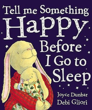 This adorable little book, Tell Me Something Happy Before I Go to Sleep, by Joyce Dunbar, “What do you do when your little bunny is afraid of bad dreams, and just can’t get to sleep?” Well, the answer is to think of happy things, of course.