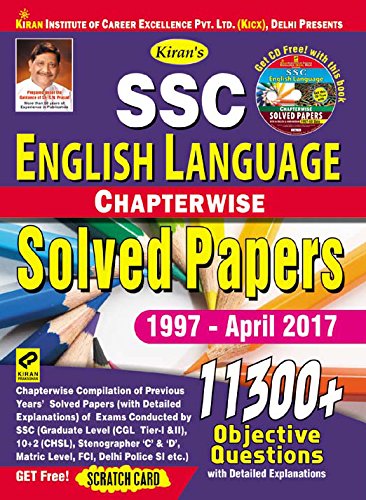 This is an eBook.Kiran’s SSc English Language Chapterwise Solved Papers 1997 - April 2017, 11300+ Objective Questions EnglishCONTENTSAN INTRODUCTION TO GRAMMAR & LANGUAGESubject - Verb - AgreementArticlesNounNumberCaseGenderPronounAdjectiveVerbGerundAdverbPrepositionConjunctionTenseVoiceNarrationTransformation of SentencesClassification of SentencesQuick Review of GrammerComprehensionCHAPTERS1. Common Errors2. Improvement of sentences3. Transformation of sentences (Active - Passive)4. Direct - Indirect Speech5. Fill in the Blanks6. Synonyms7. Antonyms8. One word substitution9. Idioms- Phrases10. Selection of mis spelt word - correctly spelt word11. Arrangement of sentences12. Cloze test13. Comprehension test