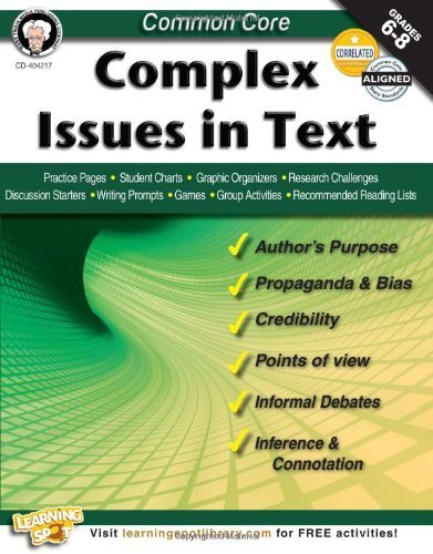 Centered around Common Core State Standards, Common Complex Issues in Text is designed to help students read both fiction and nonfiction with a critical eye, develop reasoned opinions, and defend ideas with specific examples. Practice pages, student charts, graphic organizers, research challenges, discussion starters, writing prompts, games, group activities, and recommended reading lists enable students to uncovering the author’s purpose; spotting propaganda and bias in nonfiction; sorting credible from unreliable narrators in fiction; seeing one event from multiple points of view; building arguments for informal debates; and using inference and connotation to discover underlying meanings. Mark Twain Media Publishing Company specializes in providing captivating, supplemental books and decorative resources to complement middle- and upper-grade classrooms. Designed by leading educators, the product line covers a range of subjects including mathematics, sciences, language arts, social studies, history, government, fine arts, and character. Mark Twain Media also provides innovative classroom solutions for bulletin boards and interactive whiteboards. Since 1977, Mark Twain Media has remained a reliable source for a wide variety of engaging classroom resources.