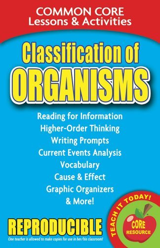 You are purchasing the Paperback format of this book. How to Use the Classification of Organisms - Common Core Lessons and Activities Work through the lessons and activities as a class to teach your students higher-order thinking, analysis, and 21st century skills necessary to meet new Common Core expectations. Allow students to work through the lessons independently to build and practice these new skills. Include technology, collaboration, presentations, and discussion in the activities as you desire - you can decide how in-depth to go. Watch your class develop new abilities to meet the rigor of Common Core State Standards, right before your eyes!Click to view sample pages from this book. Use some of the pages - or use them all - based on your grade, your students, your curriculum, and your needs. Use these pages at their current size, or if you prefer them to be 8.5" X 11", enlarge them 125% on your copy machine. To download the graphic organizers labeled "GO" in the Table of Contents click . Use the correlations grid to easily see which Common Core standards are covered in each lesson.The Classification of Organisms - Common Core Lessons and Activities Reading for Information Higher-Order Thinking Writing Problems Primary Source Analysis Vocabulary Graphic Organizers Map Activities & More!Here is the Table of Contents for the Classification of Organisms - Common Core Lessons and Activities What Is Classification?: Reading Informational TextCan You Classify?: Applying Concepts GHow to Reading Informational TextClassifying by Applying Concepts GComparing Two Comparison of Primary SourcesWhy Classify?: Reading Informational TextKingdoms & /b>Classifying Information GClassification Research & Writing GClassifying Compare & Contrast GO1 Classifying InformationWhat Is a Specie?: Reading Informational TextClassifying Reading Informational TextClassify by Applying ConceptsBinomial Summarizing Information GO9Bacteria and Compare & ContrastBinomial InferenceCommon Core Correlations Includes Graphic Organizer Graphic Organizer is also available 8.5" x 11" online download .(numbers above correspond to the graphic organizer numbers online)