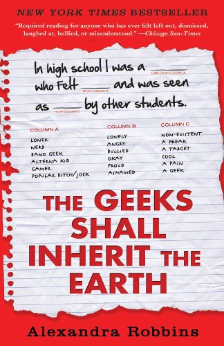 The Geeks Shall Inherit the Earth is an important book for parents, educators, and any students who feel marginalized in their school or social life. Alexandra Robbins once again has her finger on the pulse of a critical issue faced by countless young people: persecution or ostracism because of being different from those who are considered popular. Robbins takes readers inside the lives and perspectives of “geeks, loners, punks, floaters, dorks, freaks, nerds, gamers, weirdos, emos, indies, scenes.”