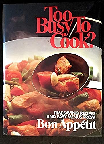 Bon Appétit's Too Busy to Cook? is your complete guide to delicious food in minutes. Over 600 easy recipes, plus hints, shortcuts, special do-ahead dishes and microwave sections make this cookbook perfect for today's fast-paced lifestyle.Every recipe is from Bon Appétit, the nation's fastest growing magazine of fine food, fine wine and creative entertaining. Each recipe has been tested in the Bon Appétit kitchens so your success is guaranteed.You will never again be too busy to serve the delicious appetizers, salads, soups, breads, main dishes or desserts that you'll find in Too Busy To Cook?,/i>