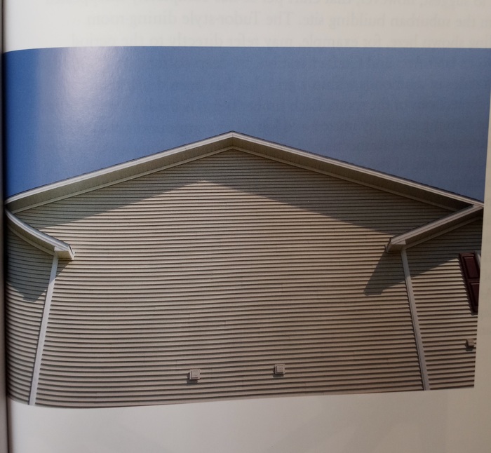 From this book a product has emerged in the form of an expression of indifference. Each chapter explores a facet of this indifference by focusing on an individual element of suburban design, . . . Each condition has been selected for a characteristic ambivalence which is then taken from its context and analysed in isolation. In all cases our attention was initially drawn by some accident of composition that we (falsely) associated with the design process. This misconception was usually brought on by an extraneous and accidental ordering device like excessive repetition, chance juxtaposition, utilitarian purity or ironic misuse. Inevitably we found ourselves looking for a motive that either didn't exist or carried the faintest trace of a suburban picturesque that had been diluted down through repeated copies until only the subtlest link remained. . . The fundamental aim of this work is to construct a vocabulary of overtly familiar design components. More important than their sources is the possibility that they might form a new approach to design that can be realised through an appraisal of what is readily available in contemporary mass housing.My favorite chapter was a photograph a blank wall of vinyl siding with the fascia boards and rain gutters angled to suggest a bay or projection, the accompanying text expounding upon the curious compression of formerly distinct architectural elements. "It appears that detail is slowly being absorbed into the homogenous surfaces - gradually reduced to pure gestures and flattened into little more than a two-dimensional graphic. As detail recedes, the primary forms seem to swell with a boisterous confidence in their sheer size. At times, suburban houses have the intimidating quality of an object that has grown too quickly and wants to dominate everything around."