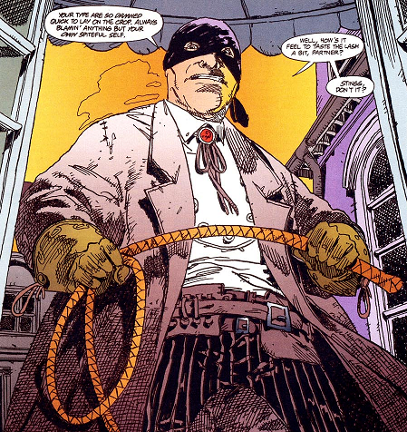There’s another new, poorly costumed, creepy-assed villain in town who had a crappy childhood and has a twisted sense of justice that’s the polar opposite of the Sandman’s.