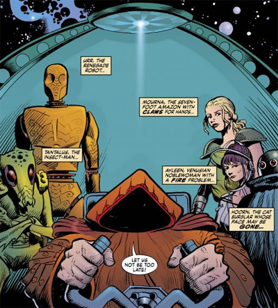 Sometime in Earth's distant future, the planet is in danger--not just physical danger, but the very fabric of reality is being ripped apart. The elite call on once-decorated, but then disgraced General Roark to gather six others with special abilities to save them. With elaborate promises of rewards to come, Urr, the renegade robot; Mourna, the Amazon-like woman with steel claws for hands; Tantalus, the incredibly swift insect-man; Ayleen, a Venusian woman with quite literal fire-power; Hoorn, the stealthy and adept cat burglar; and Kenrus the brilliant, outcast technologist all agree to join Roark on a deadly journey to Earth's past on a mission to save its future.