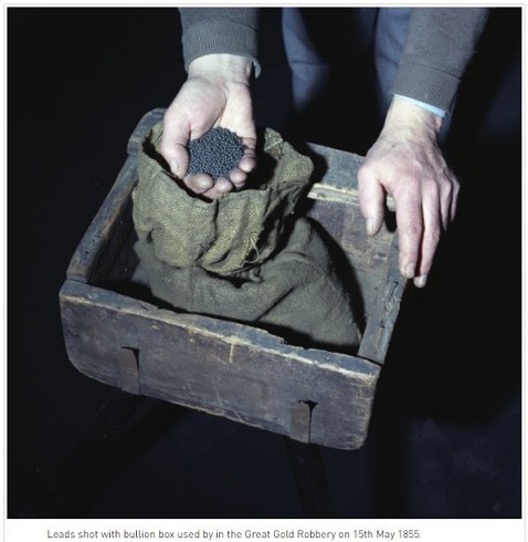 In 1855 Edward Pearce and his compatriots replaced gold worth 12,000 "pounds sterling" with a roughly equivalent weight in lead shot - a "trade" rightly regarded as Grand Theft.