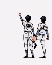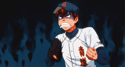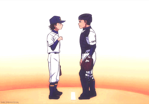 get your man Eijun! there's a ba-thump in this scene for the feeling Eijun gets from pitching well with Miyuki, but I'm inclined to have it leaning more toward it being about the with Miyuki versus just the good pitch
