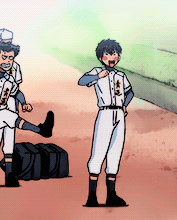 Sawamura provides Kuramochi with many an opportunity to show off his high-kicks and wrestling moves. Some might say Kuramochi is drawn to Eijun's ass they'd be right. (that 3rd gif just looks like -mochi's humping Eijun geez) gifset here
