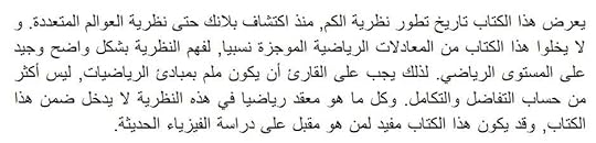 جيد ولابأس فيه لمن لايفقه شيء في الفيزياء غير ذلك فهو ممل لكن على الأقل الكتاب قصير فقد يشفع ذلك (هذا رأيي الشخصي والكتاب موجة لعامة القُراء وليس المتخصصين)، وايضا هناك اشكاليات فنية من حيث الرسومات والمسائل فالكاتب يتكلم عن رسمة ولن تراها الا في الصفحة الاخرى وهذا احد اسباب امتعاضي اثناء القراءة