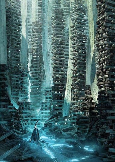 This definitely makes me think of Mahala once the upper levels were destroyed allowing those under to see the sky. Hehe it was even snowing suring the final events of this book what a coincidence (even though the figure kind of reminds me of slender man)