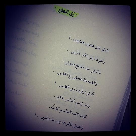 ديوان مميز للغاية خلصته ف 4 ايام تقريبا ودة معدل هايل لانى كنت بقرأ القصيدة مرتين و أحياناً الديوان متقسم تقريباً ل3 أو أربع أجزاء منهم جزء شعر عادى وجزء دينى ودة الى عجبنى جداً خاصة قصيدة يوم الجمعة وجزء سياسى وجزء رومانسى لم يرق لى كثيراً وختم بجزء أسماه تخاريف ليلية تجربة مميزة وقراءة أولى ولن تكون الأخيرة للكاتب بعض الإقتباسات