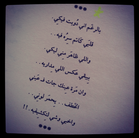 وانتى ايش دراككي انى رغم طيبتى و صغر سنى و البراءة الباينة منى مش هاكونلك اقوي ضهر ده انا جوه قلبي بيكي قوة دايما بتنادكى مش بتظهر الا ليكي وقت اي خوف و قهر