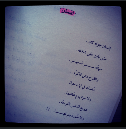 "يا فرحى يا ضحكتى يا كل بسمة اختفت من دنيتى خايف ما اصحى و افوق من همى و لا حتى بتشييع جثتى " #امتى <3 "انا كائن مبسوط بطبعه و الفرحة جواه غريزة انا اللى يفهمه و يتابعه هيلاقى فيه الف حياة ! " #وشوش سعيدة <3
