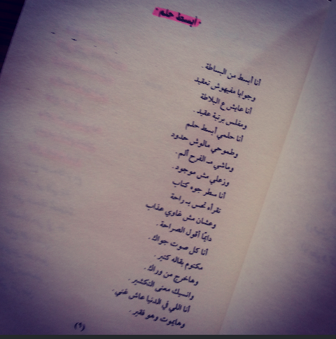 ديوان رائع بمعني الكلمة و مُختلف ... ضعت بين زوايا الديوان الذي أخذ مني يومين لأُنهيه .. ضعت فـ زواياه ، أخذني التشويق لاُنهيه لكني في نفس الوقت لم ارد الأنتهاء منه فكُنت أُماطل في إنهائه ... كان عاجبني الجو اللي كنت فيه و أنا بقراه :) لغتُه روعة برغم وجود بعض الأخطاء !! الديوان كبداية كان حلو و فيه مجهود جامد و واضح جداً فيه .. إسمه كمان يشد جداً ، أعجبني بـ الأوي .. بس " عن فيلسوفة " من وجهة نظري المتواضعة أرقي و أجمٌل . بالتوووووفيق :))