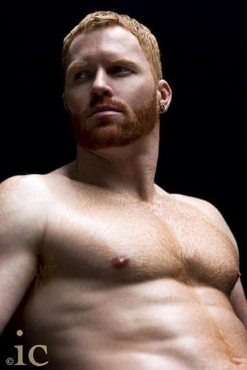 "...red hair cut just below the ears, disheveled in that absolutely precise way."