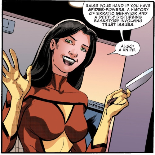 But to accomplish this she has to take the Avengers couple du jour along for the ride: Hawkeye and Spider-Woman.
