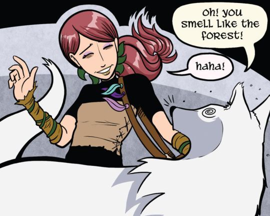 So, first we have a overnight teen party (don't look at me like that, it's PG) where we have several short stories about other people's adventures in the court including thesetwo pages that really highlight the comic's themes of looking deeper beyond appearances (or maybe being really patient with scary things because they may get to a point eventually).