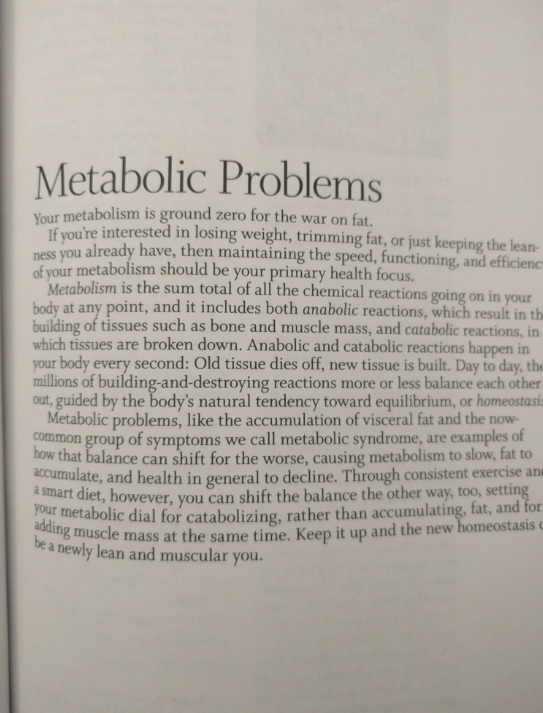 In the following paragraph, the author explains his view of metabolic problems, and how exercise can help with those (with the goal of losing weight, etc)