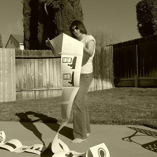 When I first picked this book up from the library, I figured that it was a really old copy because the binding was coming apart. (In my defense, the hardcover was ripping and had dents so it very well could have been fam.) Turns out, it was an artistic choice for an accordion format. It was really cool when I was reading it on my couch because I could lounge and the book would be a-okay. However, the problems started when I decided to more from the couch to my bedroom. Let me set the scene.