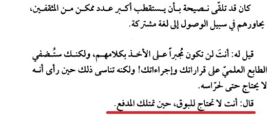 "كان يخشاها، تلك الصحف، يخشاها وحدها، أمّا تلك الصحف والمجلات العربية المنتشرة في العواصم الخاربة او العامرة، فلم يكن يهمّه أمرها."