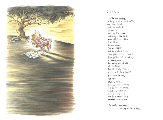 I'll admit, I take issue with this book because of my upbringing and belief that God is omnipotent and all-knowing. The idea of the first poem, that God Woke Up, right away went against my belief that God never slumbers or sleeps. Sorry, that's not a belief I want to question and I do not want to put a book out there that would make a child believe that there are times when God is not fully aware of everything going on in this world. And God starting a fight? Don't even get me started on that one.