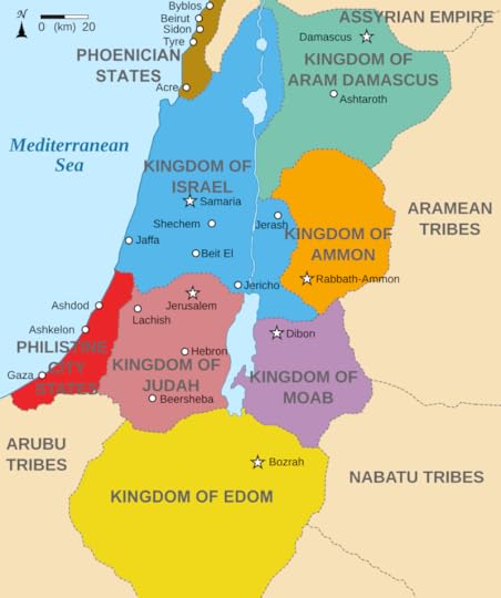 اول پادشاهان شروع عجیبی داره: داوود که آخرای عمرشه با هیچ لحافی گرم نمیشه... پس دستور میدن بین دخترای اسرائیل یکی رو پیدا کنند که پرستارِ دل دردمندِ داوود باشه و غیره. کمی بعد یکی از پسراش ادعای سلطنت و جانشینی میکنه ولی داوود سلیمان رو پروموت میکنه و یه چیزایی هم بهش یاد میده که بعد مرگش مخالفاش رو چهطور سر به نیست کنه و خودش قدرت رو به دست بگیره (اینجا شبیه سکانسِ سربه نیست کردن مخالفای کورلئونه توسط مایکله). بعد صلح برقرار میشه، یهوه به سُلی حکمت الهی عطا میکنه و سلیمان به مدت بیست سال به فعالیتهای عمرانی رو میاره و برای خدا و خودش خونه میسازه و این وسطا هم هرکی سوالی داشته ازش میپرسیده (ملکهی سبا هم خیلی کوتاه، میاد سوالاتش رو میپرسه و میره). بعدِ مدتی سلیمان گمراه میشه و به زنبارگی و بتپرستی (اِی صنم) رو میاره و یهوه میگه که چون پدرت آدم خوبی بود، با تو کاری ندارم و اجازه میدم چهل سال سلطنتی که قولش رو دادم به ته برسونی ولی بعد مرگت انتقامِ تو رو از پسرت میگیرم. پس بعد از مرگِ سلیمان، سیزده قبیلهی یهود به مشکل برمیخورن و یهودا از اسرائیل جدا میشه... بعدش باز جنگهای ��یگهای داریم به خصوص با سوریهایها و این وسط یه تعداد پیامبر بامزه هم میان مثل: ایلیا و میکا که داستانشون تو فصل دوم هم قراره ادامه پیدا کنه. این نقشهی پایینی رو از ویکیپدیا برداشتم. برای سال 830 قبل از میلاده و مرتبط به داستانِ ما. . . روزی یکی از انبیا به فرمان خداوند به دوستش گفت: «با شمشیر ضربهای به من بزن!» ولی آن مرد اینکار را نکرد. پس آن نبی به او گفت: «چون دستور خداوند را اطاعت نکردی وقتی از اینجا بروی، شیری تو را خواهد درید و همینطور هم شد.» (20:35-36)