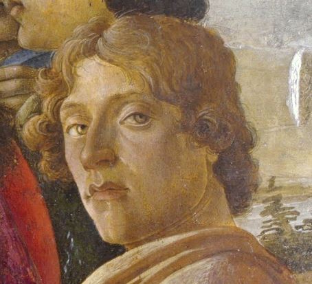 Then there was his style. He certainly learnt a fair amount from older artists. He was a pupil of Filippo Lippi, Pollaiuolo, and, together with Leonardo, of Verrochio. But Botticelli quickly developed his own idiom managing to set up his own workshop at an early age. His images have a particular ‘look’ with the candor of the faces, the sinuosity of his figures, and the tenderness of his expressions. His depicted worlds are not of perceptible realms.