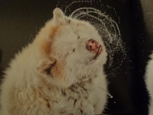 Full of pictures of a large variety of dogs as they shake, some with water some with drool, all with enthusiasm. Worth picking up and looking at. Everyone I have shown this book to has to share at least one of the photos with someone nearby.