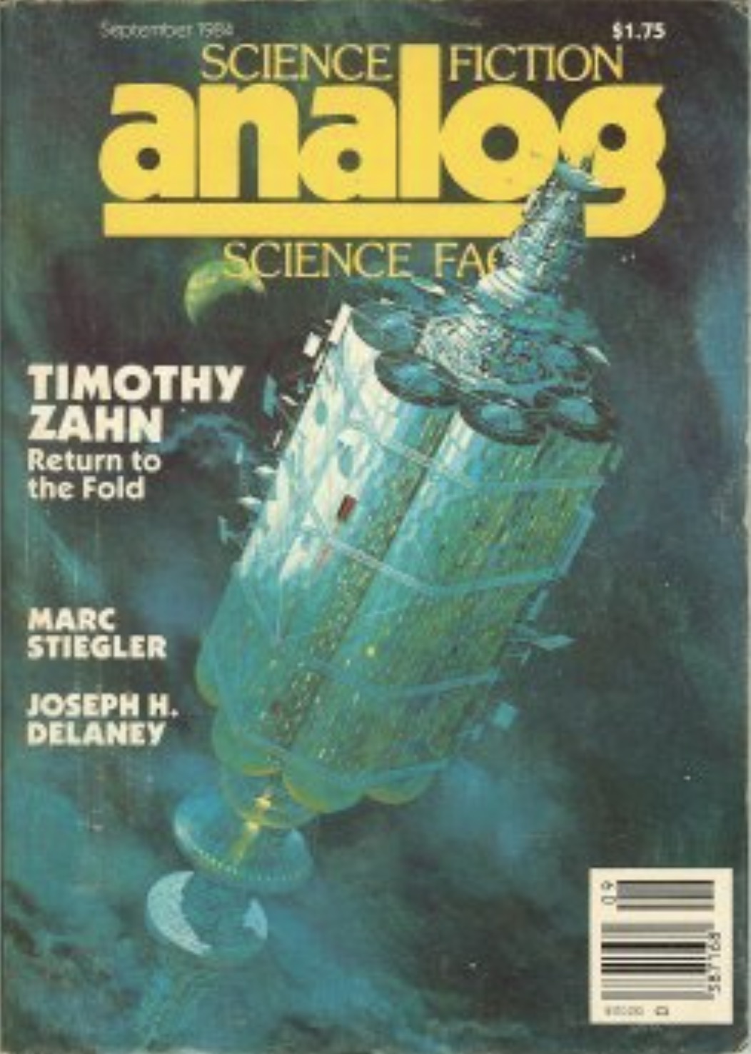 Contents: • 'Tis the Season by Stanley Schmidt • Return to the Fold by Timothy Zahn • The Galaxy Before Man by Thomas Donaldson • Perpendicular Worlds by John Gribbin • Silicon Muse by Hilbert Schenck • Biolog: Hilbert Schenck by Jay Kay Klein • Other Universes: I by John G. Cramer • On Gaming by Dana Lombardy • The Light in the Looking Glass by Joseph H. Delaney and Marc Stiegler • The Astounding Investigation: The Manhattan Project's Confrontation with Science Fiction by Albert I. Berger • Inadvisable Adversaries by Tom Ligon • Repairman by Eric Vinicoff • The Reference Library by Thomas A. Easton • Review: Heretics of Dune by Frank Herbert by Thomas A. Easton • Review: Pet Sematary by Stephen King by Thomas A. Easton • Review: Across the Sea of Suns by Gregory Benford by Thomas A. Easton • Review: Eros at Zenith by Mike Resnick by Thomas A. Easton • Review: Damiano's Lute by R. A. MacAvoy by Thomas A. Easton • Review: The Sentinel by Arthur C. Clarke by Thomas A. Easton • Review: 1984: Spring—A Choice of Futures by Arthur C. Clarke by Thomas A. Easton • Review: Dr. Adder by K. W. Jeter by Thomas A. Easton • Review: Angado by E. C. Tubb by Thomas A. Easton • Review: Salvage and Destroy by Edward Llewellyn by Thomas A. Easton • Review: The Mutants are Coming by Isidore Haiblum by Thomas A. Easton • Review: Over My Shoulder: Reflections on a Science Fiction Era by Lloyd Arthur Eshbach by Thomas A. Easton • Review: Future Life by Michel Salomon by Thomas A. Easton • A Calendar of Upcoming Events by Anthony R. Lewis