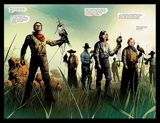 I never got into the novel series but after reading this particular graphic novel I just might give it another try. This volume focuses on the Gunslinger before he became a legend in this post apocalyptic Spaghetti Western Fantasy tale. It covers the legends of his home realm life, how he earned his guns at an early age and his first mission which led to him meeting his first love.