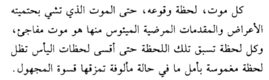 تأسرك الفكرة...وتنسى أنك أمام نص أدبي...تنسى كل ما حولك وتقف وجها لوجه أمام الموت... تستقبله بوجه طلق تارة...وتتنكر له تارة أخرى...تستعير حروفهم...وتفكر بتفاصيلهم التي تشبهك...فتنوع أفكارهم ومحطاتهم ومواقفهم وأساليبهم يمنحك الفرصة لمزيد من التأمل