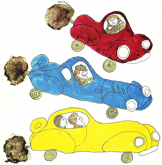 Take a red car. Take a blue car. Take a yellow car. Take a big purple car. Take a little black car. Add a green bug. Mix well. Beat the yellow light, then. . . OOPS! INSTANT BROWN GRAVY!