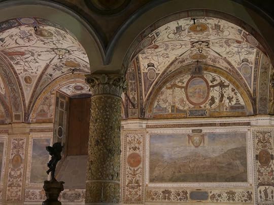 Cox’s expertise makes the historical texture of her setting also highly convincing and hypnotizing. Domestic interiors; eating manners with the new utensil—the fork; practices in private education; clothes with the doublets and brocades and cowls and detachable sleeves; the new French disease and the widespread of malaria; the wars with the condottieri and the looting and their barracks; the ubiquitous daggers and the priced killing metals; the landscapes with the rounded hills; the differences in the provinces and the dialects; the rise of the “cortigiana”. I particularly liked reading on what a visit to the then recently discovered Domus Aurea”, Nero’s Villa, must have been like around 1500. During the Tuscan visit I had the opportunity to admire the plethora of Renaissance wall paintings from based on the unearthed Roman models.