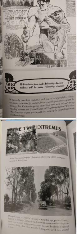 And, of course, also alarming and depressing. Farmer takes pains to illuminate the hubristic, bigoted, and often flagrantly racist ideologies that enervate most Western interactions with trees in California, on all sides of our many divides. Magnificent redwoods were superlative lumber to harvest, awe-inspiring curiosities that could earn a quick buck, and quasi-religious totems to preserve in perpetuity, but always objects of some Western mania. Likewise, eucs were variously instruments toward a horticultural utopia, financial investments, and invading barbarian outsiders to be evicted, if not murdered, and Farmer quotes numerous sources that make the analogies to human opinions of other humans very, very explicit. Largely, his own perspective is fairly balanced, though certainly tending toward the live-and-let-live side of the native/invasive divide.