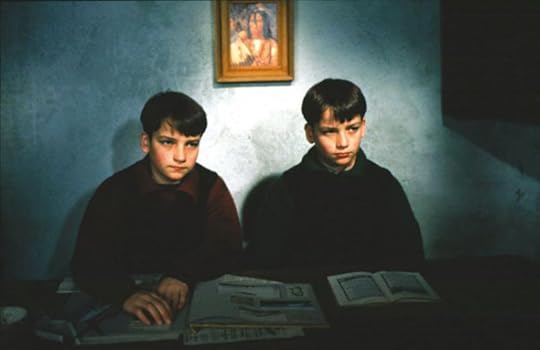 Lewis and Benjamin gambolled ahead, put up grouse, played finger-football with rabbit-droppings, peered over the precipice onto the backs of kestrels and ravens and, every now and then, crept off into the bracken, and hid. They liked to pretend they were lost in a forest, like the Twins in Grimms’ fairy-tale, and that each stalk of bracken was the trunk of a forest tree. … They lay on their backs and gazed on the clouds that crossed the fretted patches of sky … they would press their foreheads together, each twin losing himself in the other’s grey eye.