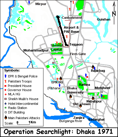 Operation Searchlight: Location of Pakistani targets in Dhaka on 25 March 1971.