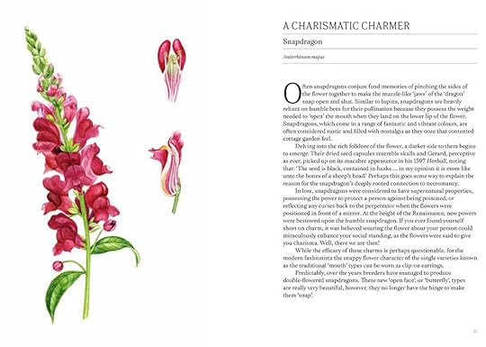 Entries about the flowers themselves are illuminating, revealing interesting facts about how plants came by their names, interesting stories and historical facts linked to the plants, and how the flowers have been used and viewed throughout history. No section ever feels too long, and each section managed to hold my interest, throughout the entire book.