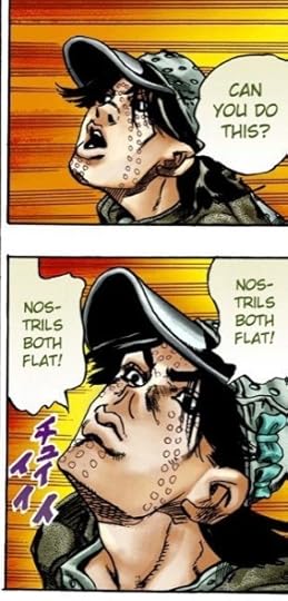 Another bit of how much of a slow-boil this story is compared to other JoJos: chapters are in double-digits and only now do first bodies hit the floor, first mysteries rear their ugly heads, first murderers hide in shadows. Getting some Angelo vibes out of this bunch.