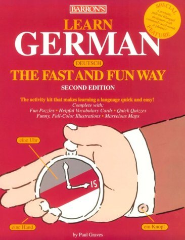 Updated with helpful facts and tips for international travelers, this new third editions of Learn German the Fast and Fun Way is suitable as language teaching book for adults as well as for older children. It instructs beginners in the basics of reading, writing, understanding, and speaking German. The book lightens language-learning routines with cartoon-style illustrations, language games, and puzzles. A set of vocabulary flashcards and a small staple-bound bilingual dictionary booklet are bound into the book's spine and can be easily removed for supplementary use.