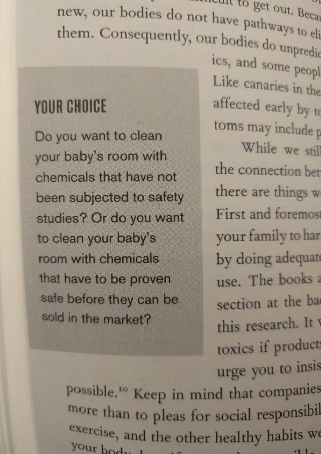 The next image is an example of the types of advice this author gives in order to have a clean life: "please flee from any chemicals, be aware of the contamination everywhere."