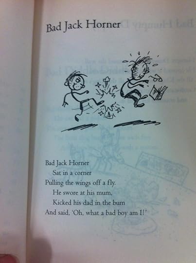 Bad Jack Horner Sat in a corner Pulling the wings off a fly. He swore at his mum Kicked his dad in the bum, And said 'Oh, what a bad boy am I'.