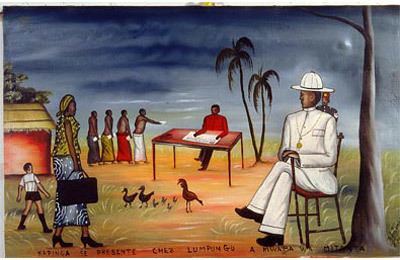 Then a long section where each page has a reproduction of painting like this below, only small and NOT in color, boo! With Tshibumba Kanda-Matulu's oral account verbatim of what he is depicting in the scene.