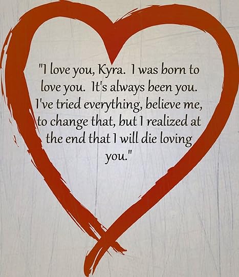 “I love you, Kyra. I was born to love you. It’s always been you. I’ve tried everything, believe me, to change that, but I realized at the end that I will die loving you.”