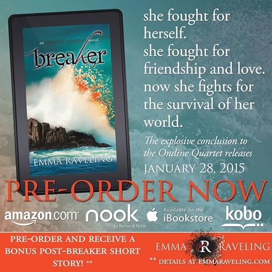 In Breaker, author Emma Raveling brings it and she brings it hard! Thrills, twists, startling revelations, heartbreak, romance, pain, sexy-times, gut wrenching grief, humor, simply beautiful words...Breaker has all this and more. This fourth and final book in the Ondine Quartet does not go out quietly, but ends with a bang, a boom, fireworks, and a thousand trumpets. This book resonates loudly, it sinks bone-deep; I can still feel its gorgeous echoes in my heart. I’ve said it before, but I’ll said again: Emma is a spectacular storyteller who spins endlessly enthralling tales and never disappoints me...Breaker is no exception.